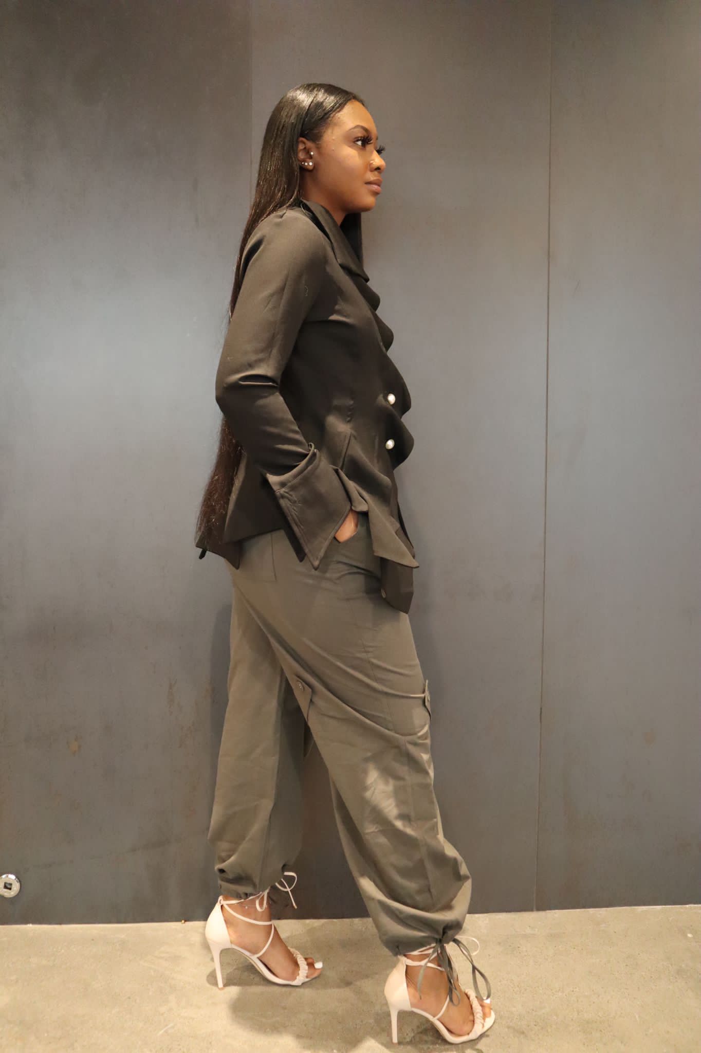 This is the Pants by Adorned Articles, it is an Elastic Waist Casual Cargo Pants with Belts and Side Pockets.